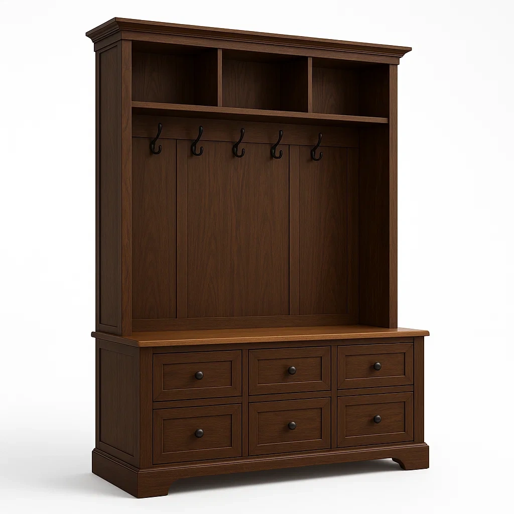 Estructura: 6 cajones, 5 ganchos, 3 compartimentos abiertos